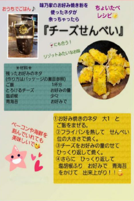 味乃家特製お好み焼き粉を使ったネタが余ったら「チーズせんべい」。