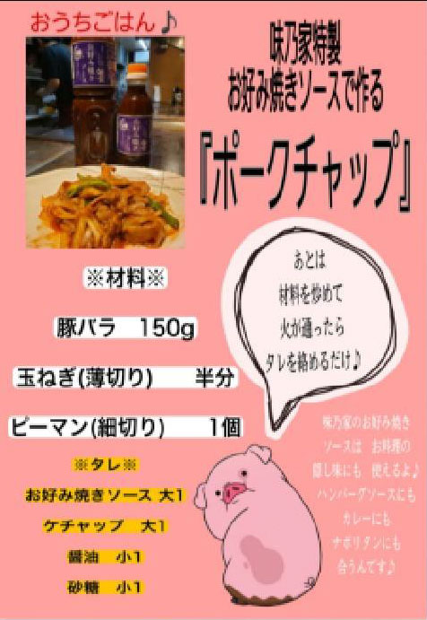 味乃家のお好み焼きソースはお料理の隠し味にも使えるよ。